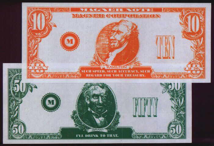 Vor einigen Jahren fiel mir in einem Wirtschaftsmagazin eine interessante, eingeklebte Werbepostkarte ins Auge. Die Firma Nixdorf forderte mit dieser geldscheinähnlich gestalteten Karte Interessenten auf, sich zusätzliche Informationen zum Bereich elektronische Arbeitshilfen im Bankbetrieb zusenden zu lassen. Die Karte gefiel mir und den Text an der Stelle, an der bei Banknoten der Strafsatz steht, fand ich so hübsch, daß ich die Karte herausnahm und sie in meine Kramkiste legte. Der Text lautete: Wer Bankware nachmacht oder verfälscht oder nachgemachte oder verfälschte sich verschafft und in Verkehr bringt, wird schon sehen, was ihm blüht. Im nächsten Monat fand