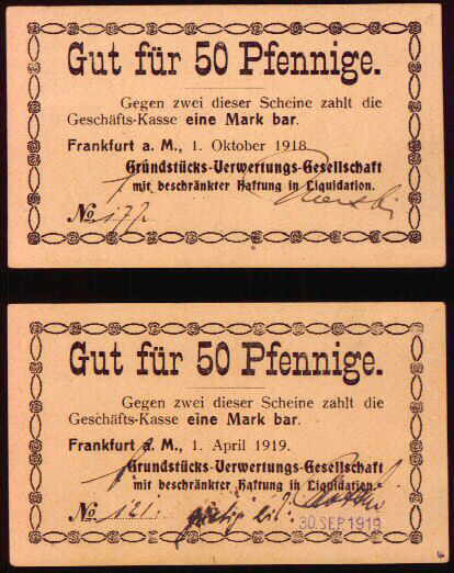 Frankfurt 1918 u.1919 farbige Grafiken Grundstücks- Verwertungs-