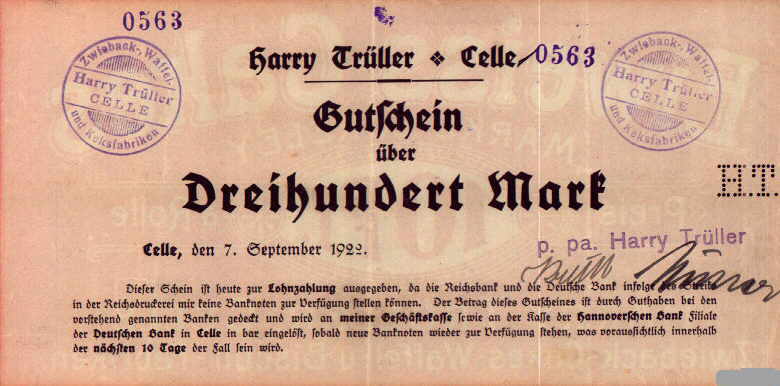 RS: Kekspapier der Firma Harry Trüller Aktiengesellschaft aus Celle