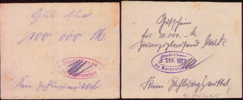 20.000,- Mark Markranstädt, 1923 Behauptet kein Zahlungsmittel